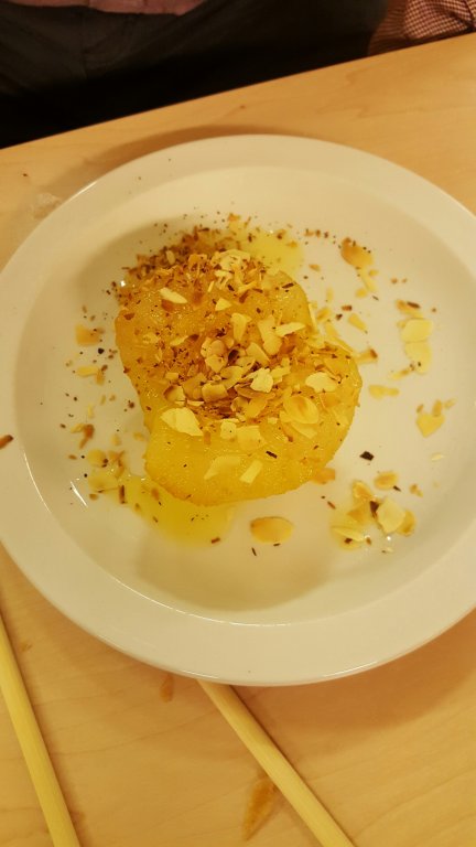 Kinesiske pærer i alkoholsirup med mandel.