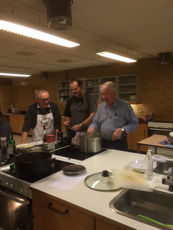 Svitses i lidt olie, tilsæt herefter en klat smør, sauter igen uden at branke og tilsæt 50 g mel, bages godt igennem under omrøring.