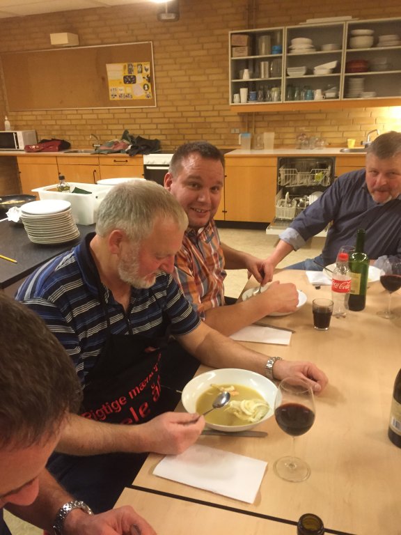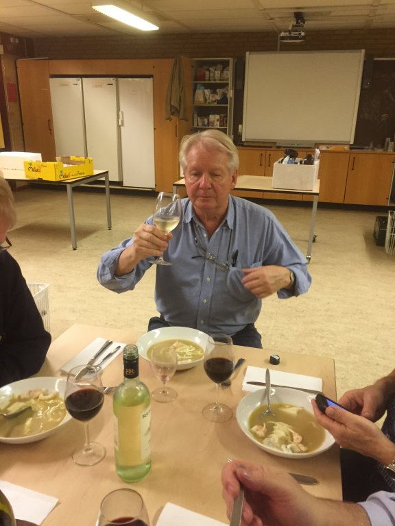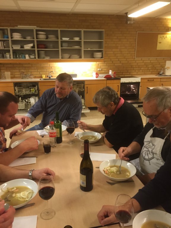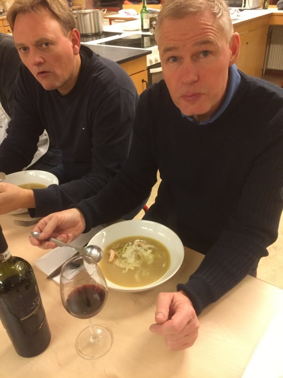 Fonden herfra tilsættes suppen sammen med en sjat alkohol.