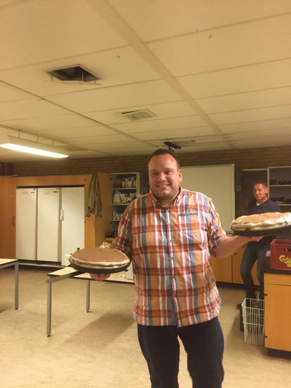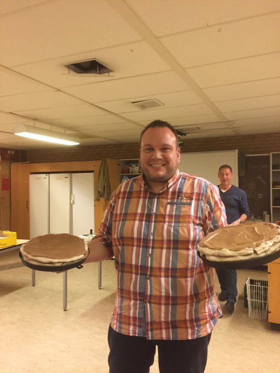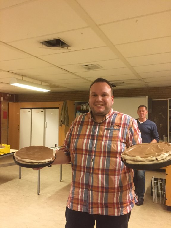 og så fremdeles, slut med at smøre den øverste bund og stil kagen koldt.