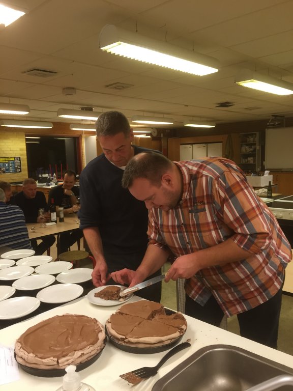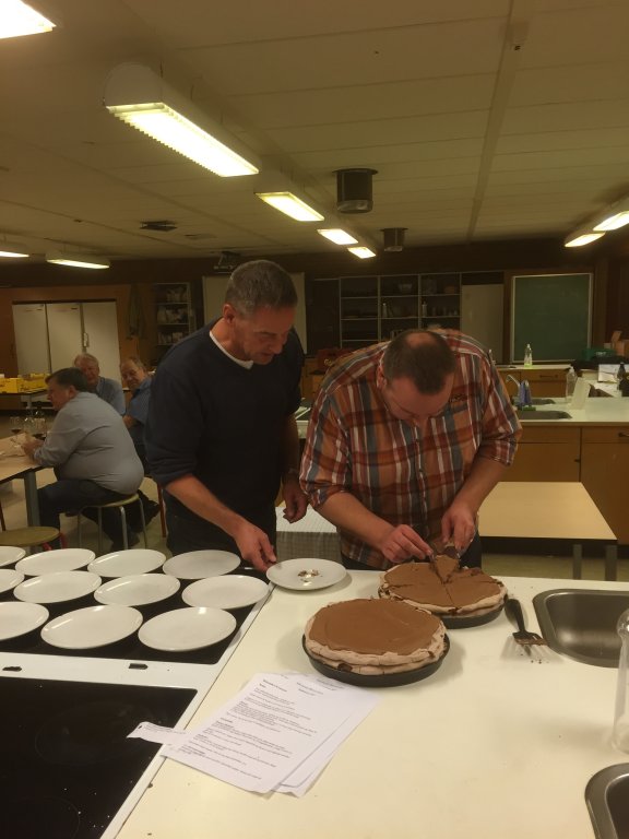½ l fløde piskes og heri vendes choko/marengsmassen forsigtig og grundigt.